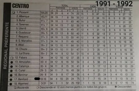 TEMPORADA 1991 - 1992 REGIONAL PREFERENT GRUP CENTRE