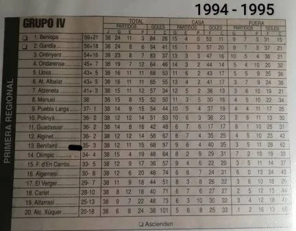 TEMPORADA 1994 - 1995 1ª REGIONAL GRUP 4º