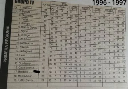 TEMPORADA 1996 - 1997 1ª REGIONAL GRUP 4º