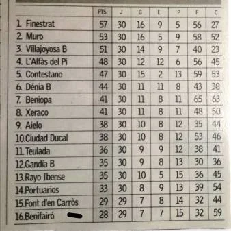 1 BENIGÀNIM CF 81 30 26 3 3 89 20
