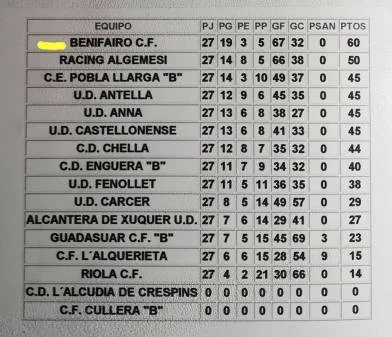 6 UE BENIFAIRÓ DE LA VALLDIGNA "A" 48 28 12 12 4 61 45